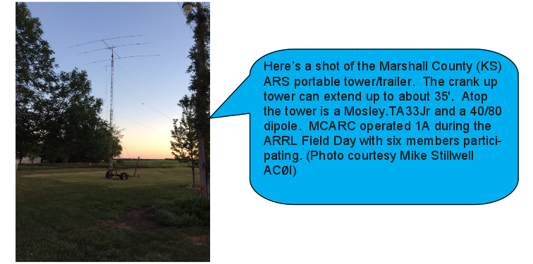 It’s actually a rare occasion that I check out things like the ARRL Midwest Division newsletter. A week and a half ago I did so for the first time in a long while (shameful, I know), and found, to my surprise, a picture of our club’s antenna 2014 Field Day setup! Thanks to MCARC secretary/treasurer Mike, AC0I, for submitting the photo that appeared in the August 2014 newsletter at the bottom of page 3.