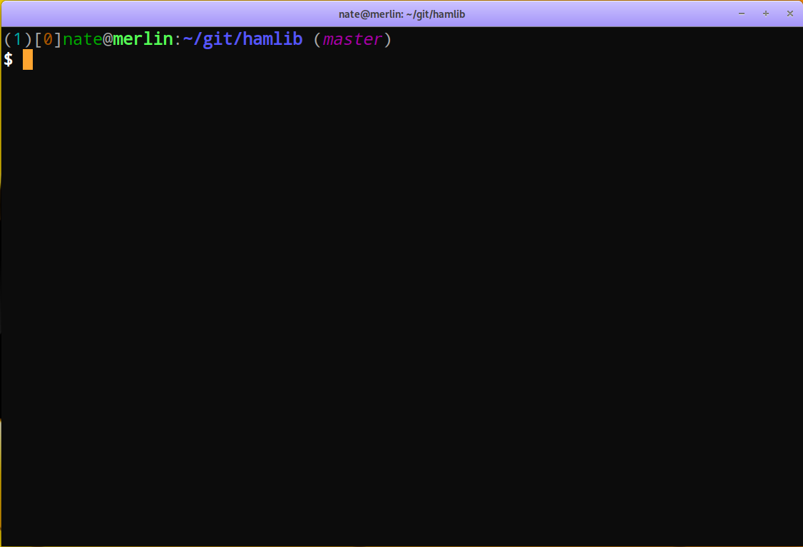 GNOME Terminal with the prompt showing Git status