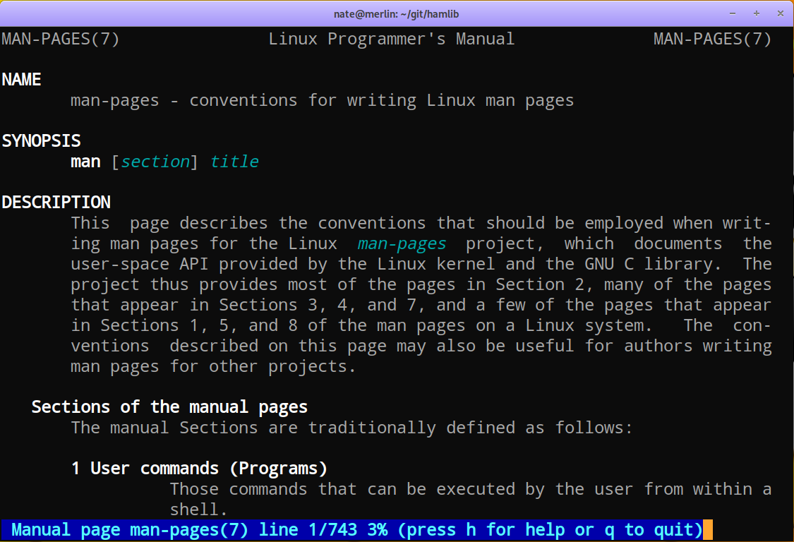 As can be seen, the Xterm shows the cyan text in italics while the Linux console does not. Still, this goes a long way toward having the most consistent color styling for manual pages across the various terminal types.